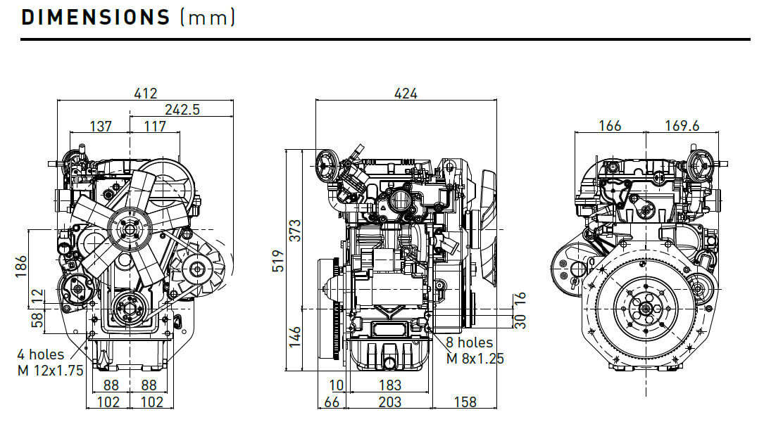 Moteur Lombardini LDW 702, 2 cylindres, refroidissement liquide. Une version de ce moteur est montée sur les véhicules Quargo.